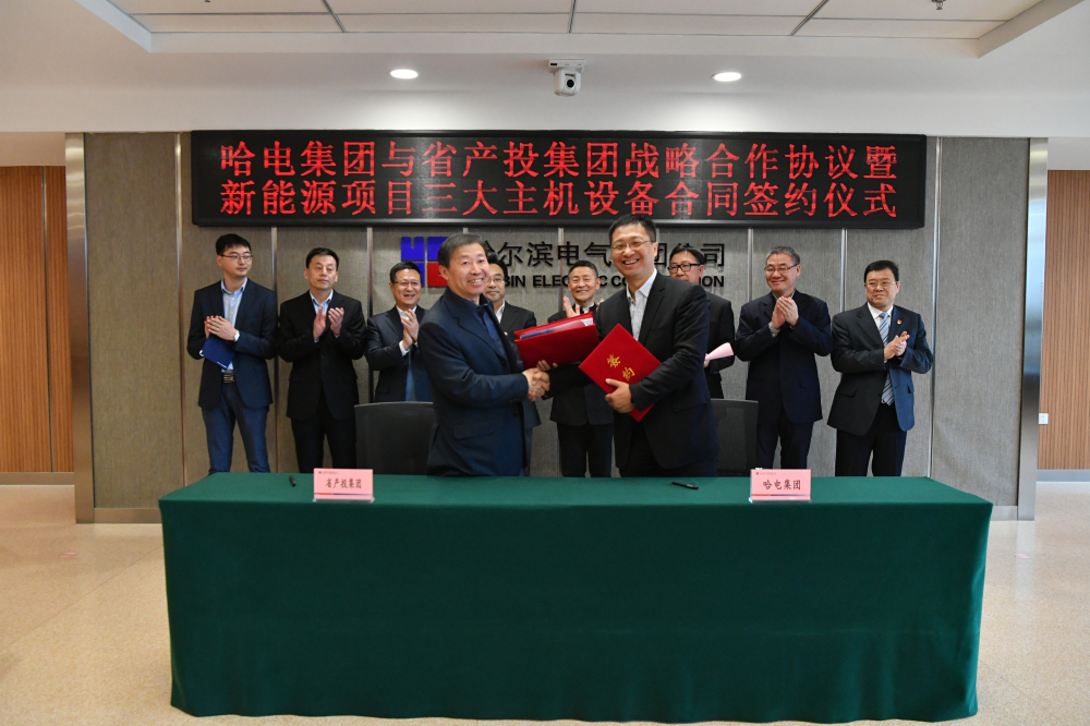 5月7日,哈電集團與黑龍江省新產(chǎn)業(yè)投資集團有限公司(簡稱省產(chǎn)投集團)戰(zhàn)略合作協(xié)議暨新能源項目三大主機設(shè)備合同簽約儀式在哈電集團江北科研基地舉行。哈電集團黨委書記、董事長斯?jié)煞?,省產(chǎn)投集團黨委書記、董事長沈宏宇出席簽約儀式并現(xiàn)場見證。哈電集團黨委副書記、總經(jīng)理吳偉章主持此次簽約活動。哈電集團黨委常委、副總經(jīng)理謝衛(wèi)江出席簽約儀式并與省產(chǎn)投集團副總經(jīng)理郭欣分別代表雙方簽署了戰(zhàn)略合作協(xié)議。