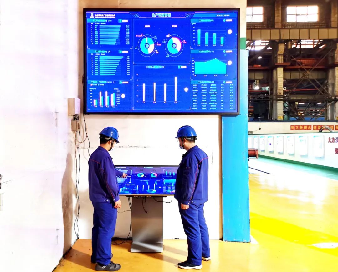 焊接工藝規(guī)范符合率、設(shè)備使用率、耗材消耗量……十幾個把控生產(chǎn)過程的關(guān)鍵數(shù)據(jù)在一塊電子屏上集中展示,成為電機(jī)公司冷作分廠質(zhì)量管控的“千里眼”“順風(fēng)耳”。