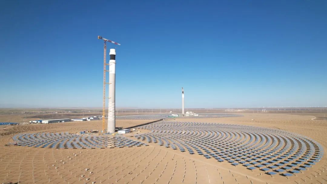 全球首個(gè)“雙塔一機(jī)”光熱儲能電站。