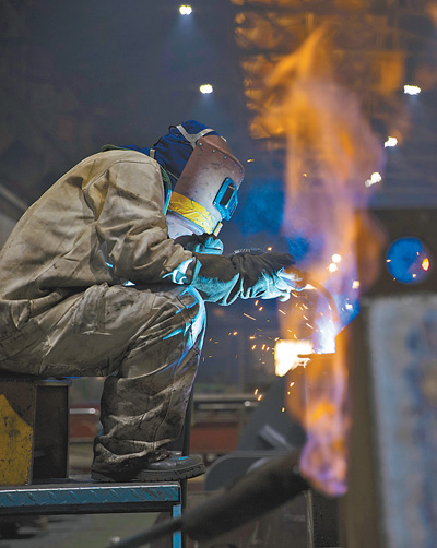 3月23日,黑龍江省哈爾濱市,工人在哈電集團電機公司生產(chǎn)車間內(nèi)進行焊接作業(yè)。在做好疫情防控的前提下,哈爾濱市規(guī)上企業(yè)堅持防疫、生產(chǎn)“兩不誤”,保質(zhì)保量完成訂單,力爭最大限度減少疫情對經(jīng)濟社會發(fā)展的影響。