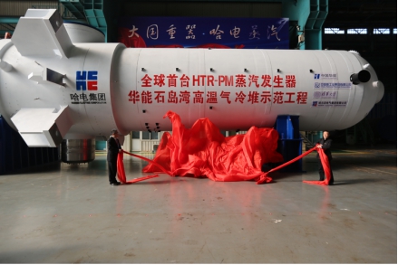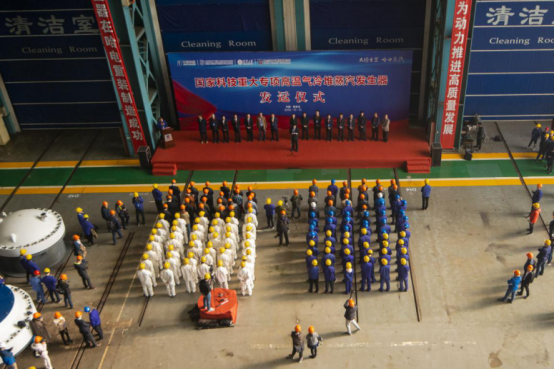 驗(yàn)收會(huì)后,哈電集團(tuán)黨委書(shū)記、董事長(zhǎng)斯?jié)煞蚺c中國(guó)華能黨組成員、副總經(jīng)理葉向東共同為“大國(guó)重器”揭幕,各方代表分別致辭,對(duì)國(guó)家科技重大專(zhuān)項(xiàng)全球首臺(tái)高溫氣冷堆蒸汽發(fā)生器研制成功并順利通過(guò)驗(yàn)收表示祝賀。
