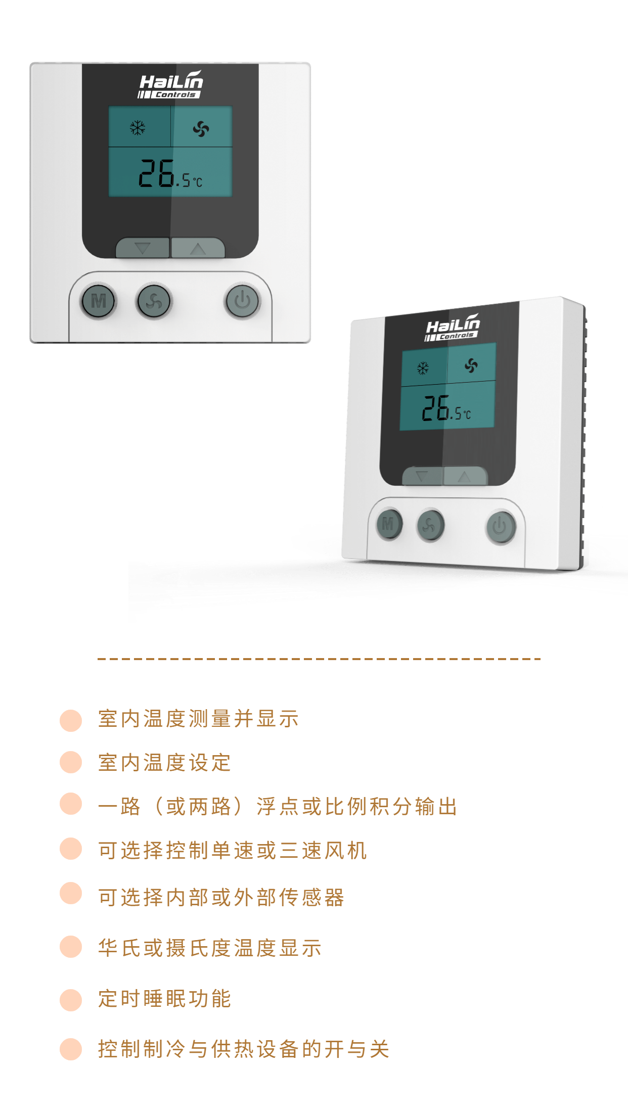 HL7031DB2-L溫控器采用微電腦控制技術(shù),大屏幕液晶顯示,液晶顯示狀態(tài)有:制冷、制熱、通風(fēng)、溫控器輸出、室內(nèi)溫度、設(shè)置溫度等。按鍵有:?jiǎn)⑼fI、功能設(shè)置鍵、風(fēng)速鍵及溫度調(diào)整鍵。