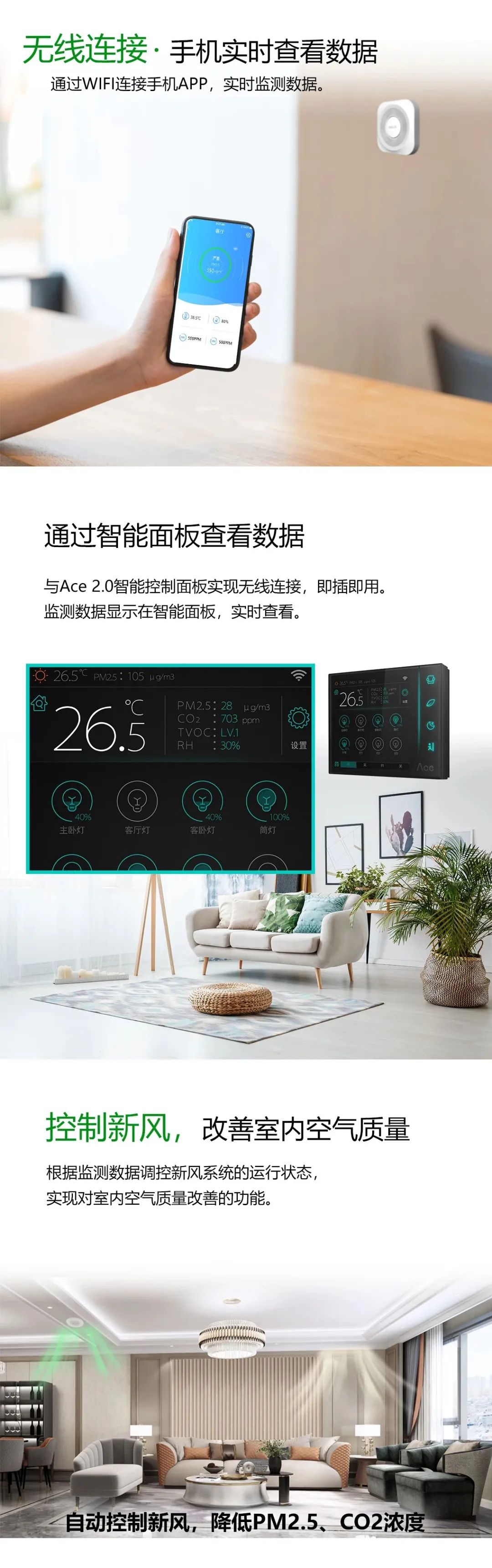 同時也越來越多地應用在樓宇自控系統(tǒng)和智能家居系統(tǒng)中,甚至很多樓宇加設獨立的空氣質量檢測系統(tǒng)。如:西安國際醫(yī)學中心、亞投行總部大樓、太原市政府辦公樓、廈門萬安智能辦公大樓等項目。