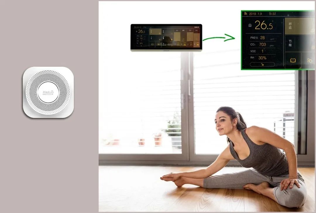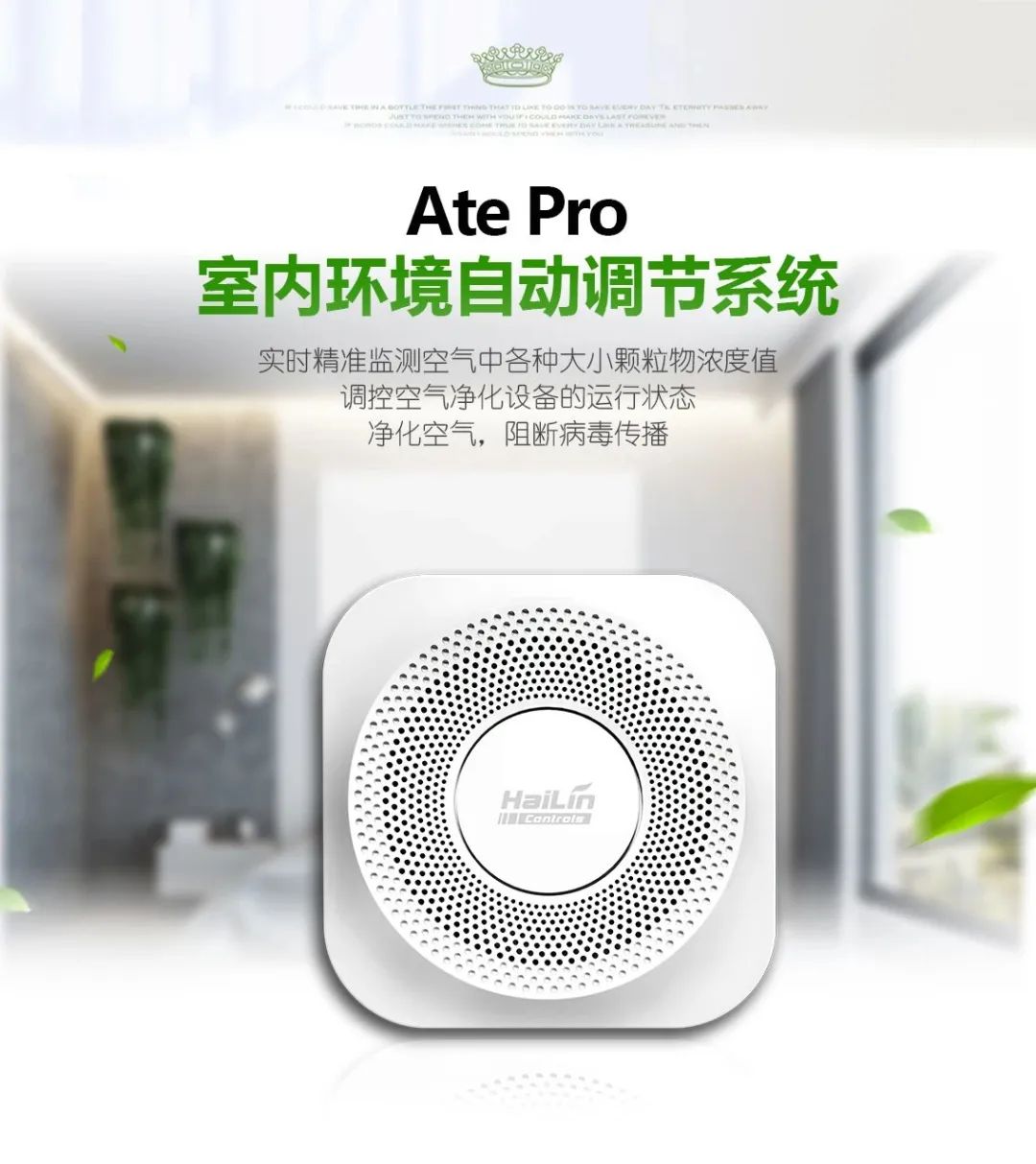 Ate Pro與Ace智能控制面板連接,Ate Pro實時監(jiān)測環(huán)境參數(shù),Ace智能控制面板根據(jù)數(shù)據(jù)精準(zhǔn)調(diào)控新風(fēng)凈化設(shè)備運行,保證室內(nèi)環(huán)境健康。同時系統(tǒng)將采集到的環(huán)境數(shù)據(jù)及設(shè)備運行狀態(tài)實時顯示在智能面板上,使用戶對當(dāng)前室內(nèi)環(huán)境健康一目了然。