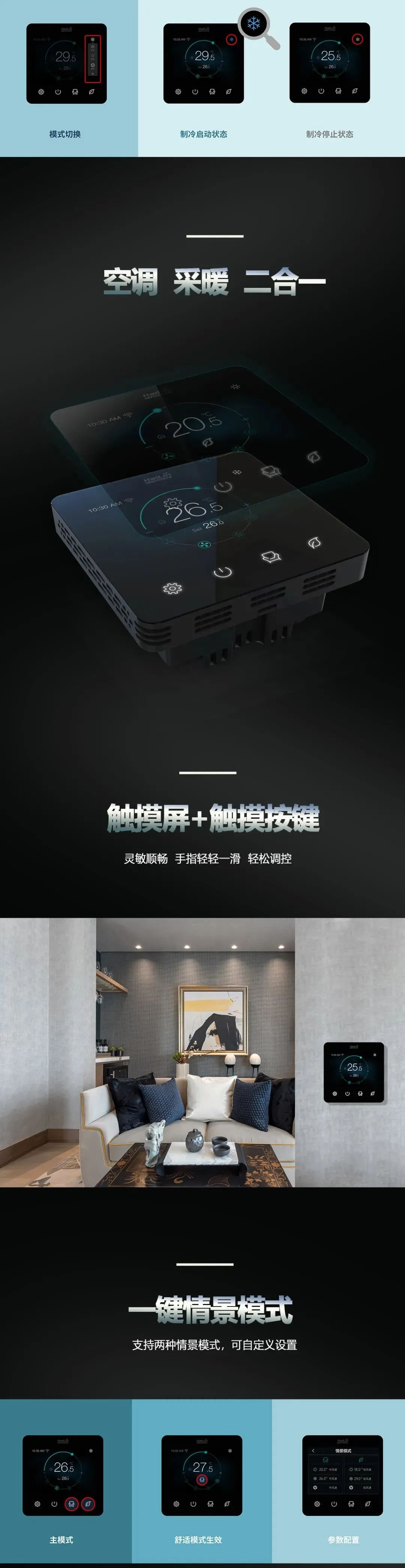 人性化的UI界面以及簡單的操作方式,給您帶來全新的使用體驗(yàn),實(shí)現(xiàn)室內(nèi)舒適、健康、節(jié)能與智能控制。