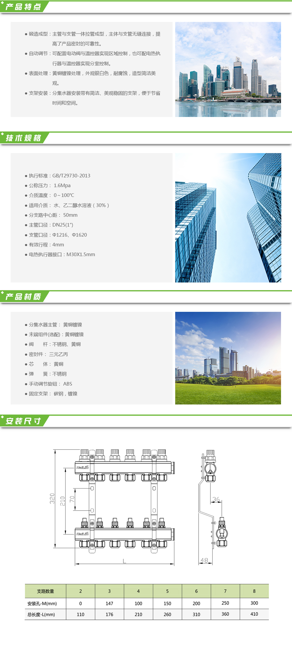 TH35系列分集水器為黃銅整體型材一體式分集水器,適用于地板采暖系統(tǒng),控制輻射地板采暖系統(tǒng)的熱能。分集水器各回路均內(nèi)置了調(diào)節(jié)水量的閥芯。可加裝電熱執(zhí)行器和溫控實(shí)現(xiàn)獨(dú)立分室度制。用戶根據(jù)需要可自行設(shè)定室溫,溫控器會(huì)自動(dòng)檢測(cè)房間溫度,并向執(zhí)行器輸出信號(hào),關(guān)閉或打開(kāi)此房間的執(zhí)行器,使室溫保持在設(shè)定溫度范圍內(nèi)。也可以在分集水器主管上加裝電動(dòng)閥,與溫控器配套使用 ...